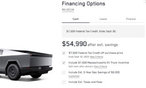 Uncategorized Cybertruck qualifies for $7500 in Massachusetts incentives, bringing price down to $55K Administrator Posted onAug 22, 2025 at 3:49 PM 0 Comments … Read more…